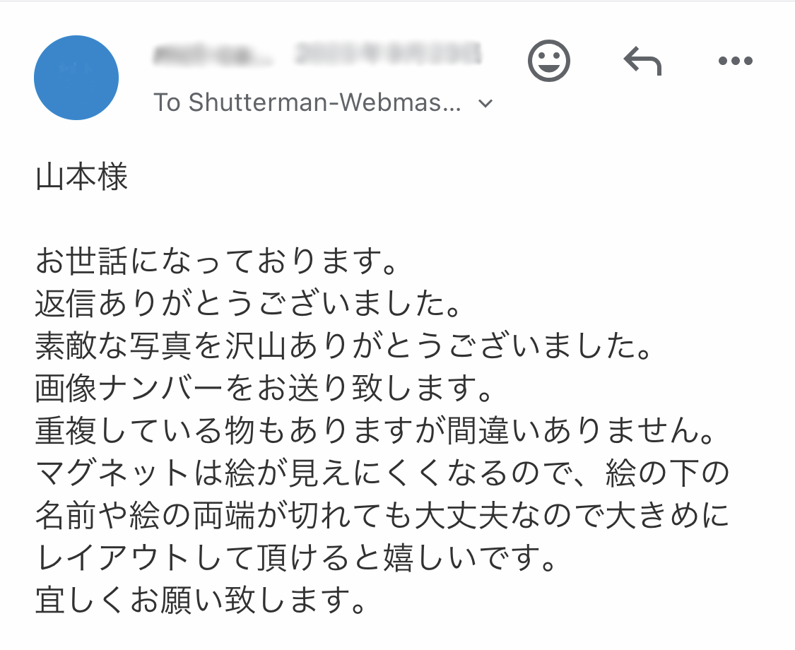 1,000×800の範囲であれば撮影いたします。ただ、1mを超えるサイズの作品がございましたら一度ご相談ください。